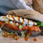 Broodje met filet Americain van slagerij Barten, sla, ei en lente ui.